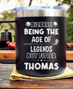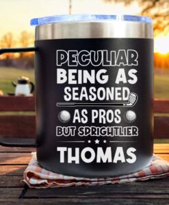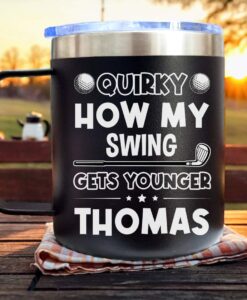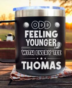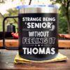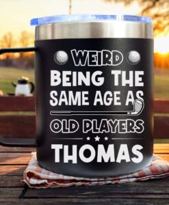 Your Golf Essentials Elevated: The “Strange Being ‘Senior’ Without Feeling It” Golf Mug isn’t just for drinks; it’s a symbol of your golf passion and fitness. With features tailored for the golf enthusiast, it blends function, style, and a touch of humor.