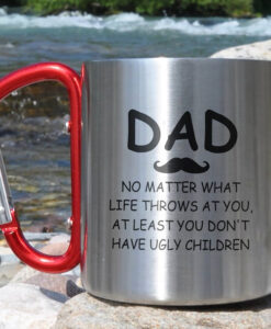 - The sturdy and handy carabiner makes it easy to carry the mug with you when hiking, camping, or backpacking as a portable travel companion.